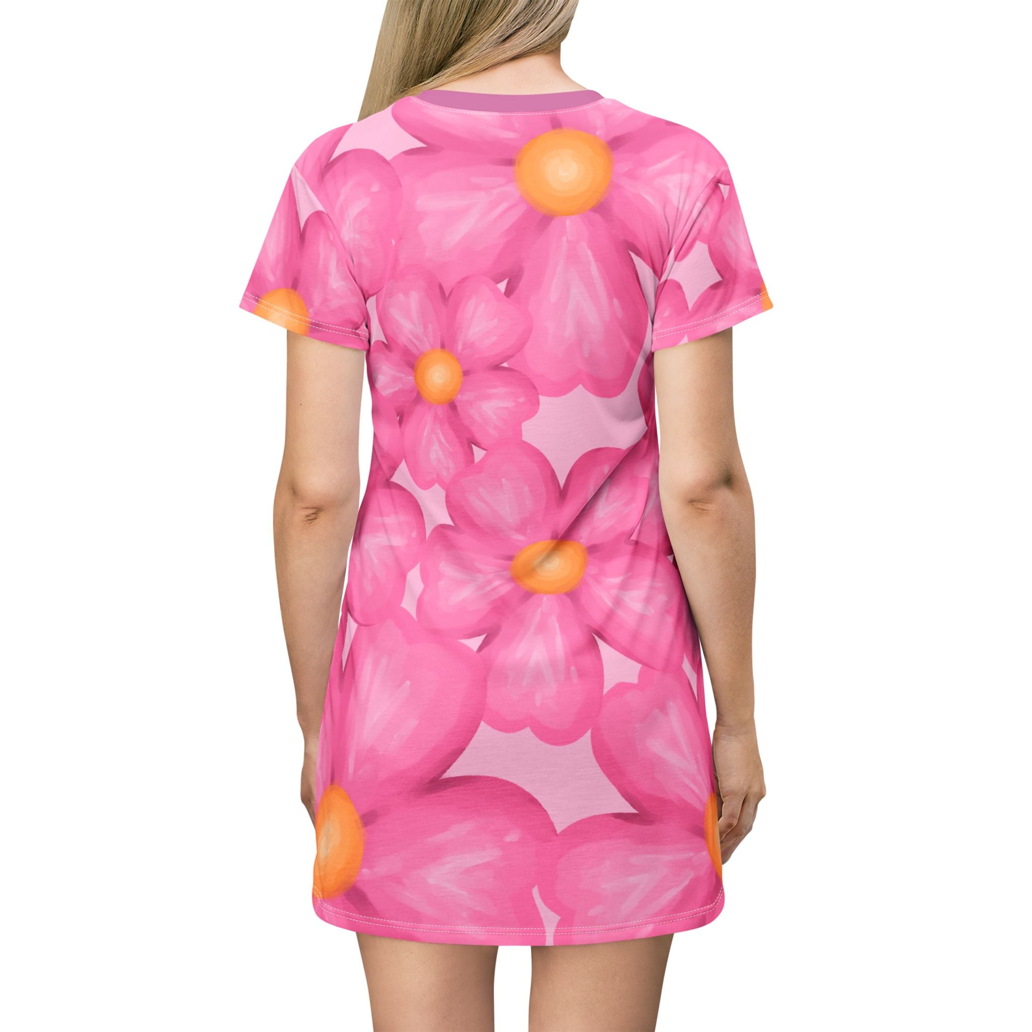 Pink Floral Print Women's Tee Dress